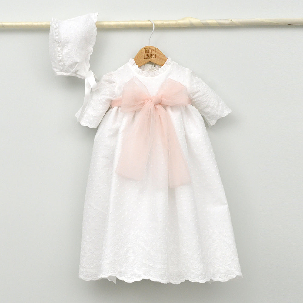 Faldón de plumeti bordado con lazo de tul.