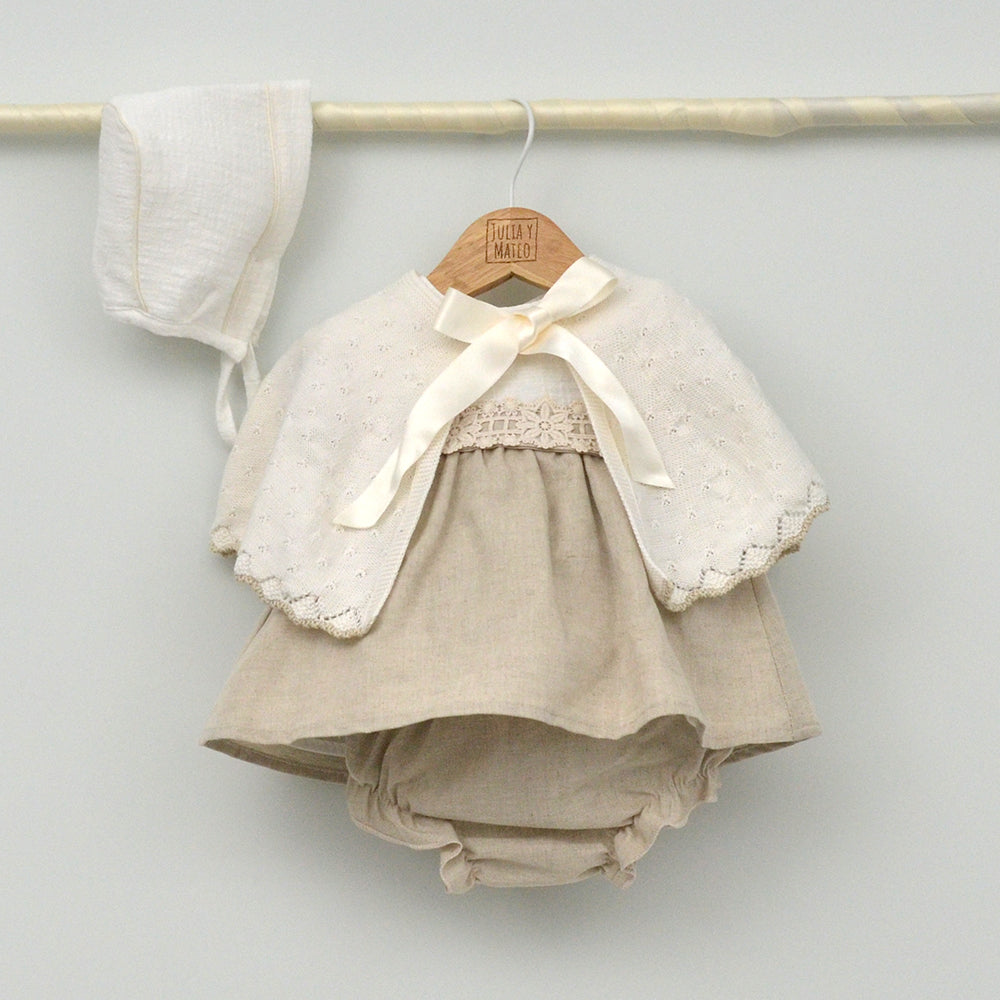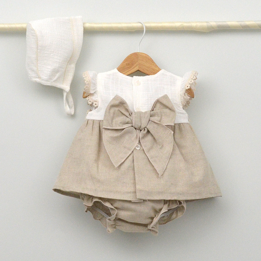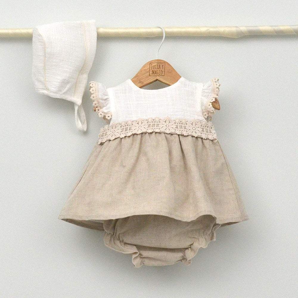 Composición: tela color arena: 55% arena, 45% algodón Tela: Blanco roto100% algodón,, Forro vestido: 33% algodón, 67%, poliéster. jesusitos niñas