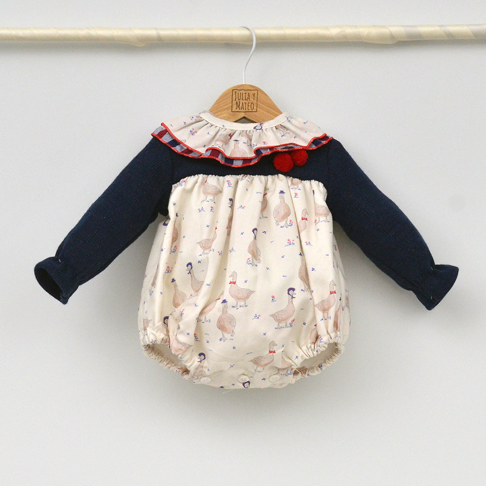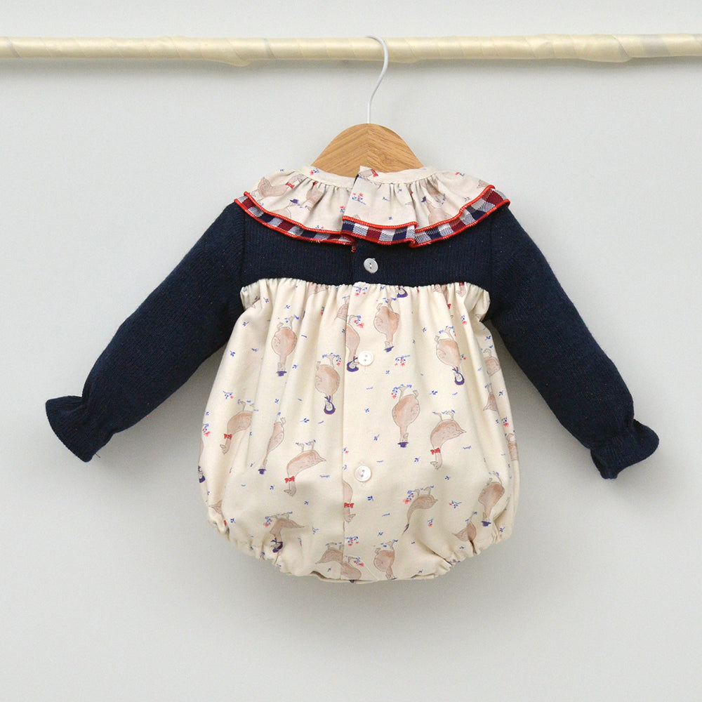 Composición: Ranita: tela estampada: 100% algodón, tela marino: 85% poliéster, 15% rayon, forro tela espampada: 67% poliéster, 33% algodón.
