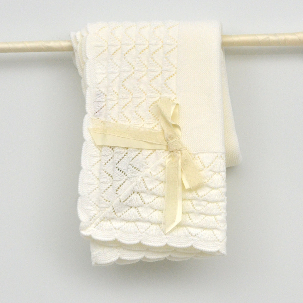 Toquilla de punto con lazo de raso. Un color muy elegante para Bautizo.