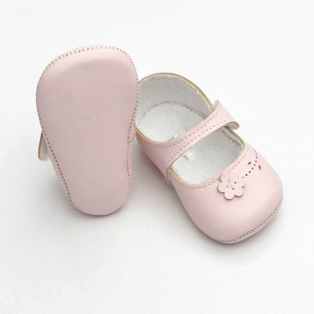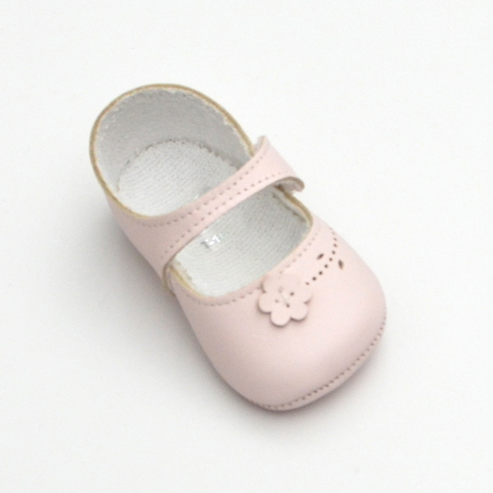 Merceditas de ceremonia y Bautizo de piel nacarada con flor.